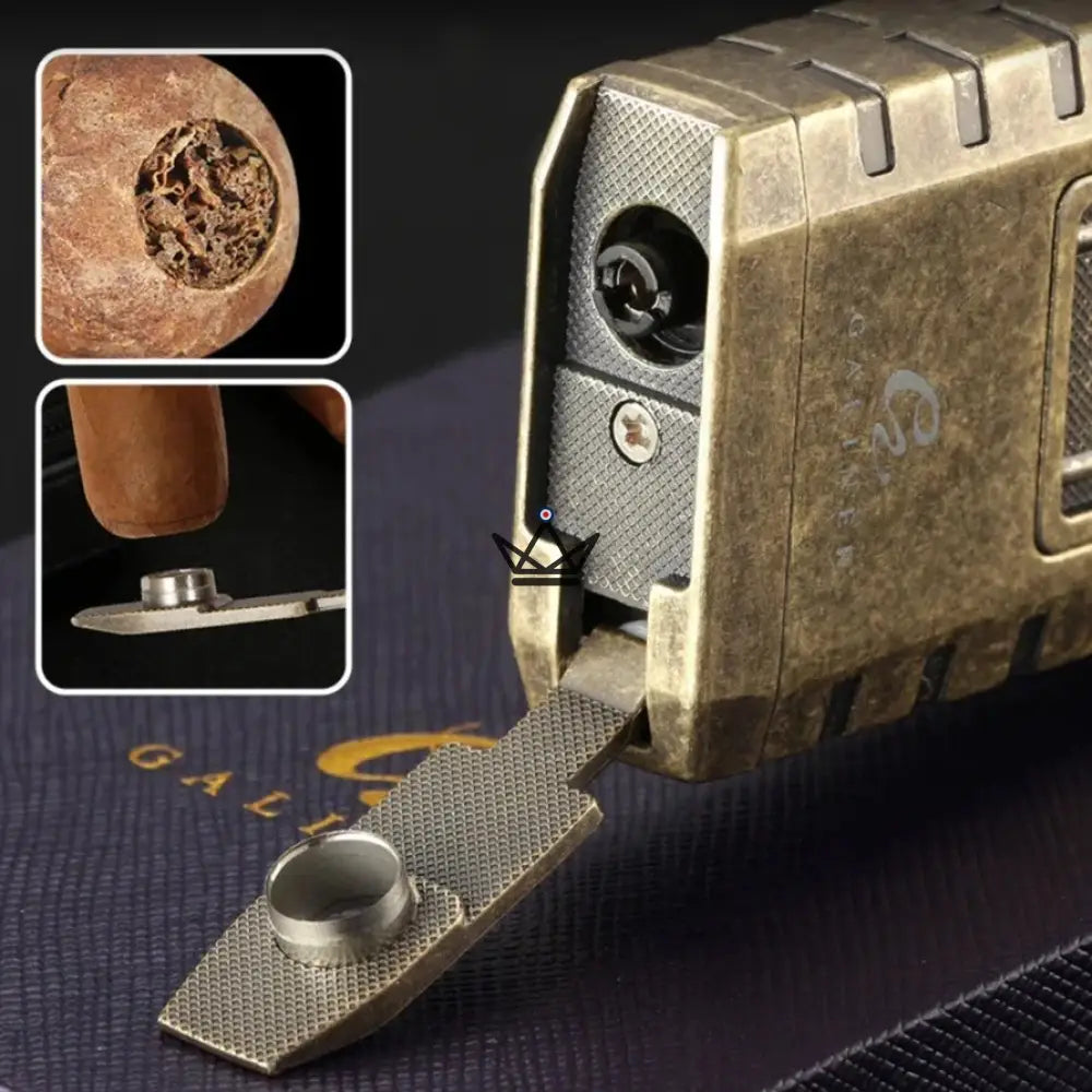 L'innovation ne s'arrête pas là ; le Briquet Série Héritage Edition intègre un poinçon à cigare discret dans sa base, ce qui en fait un outil 2-en-1 pratique pour les amateurs de cigares. Cette fonctionnalité permet de percer votre cigare avec précision avant de l'allumer, offrant une commodité absolue.