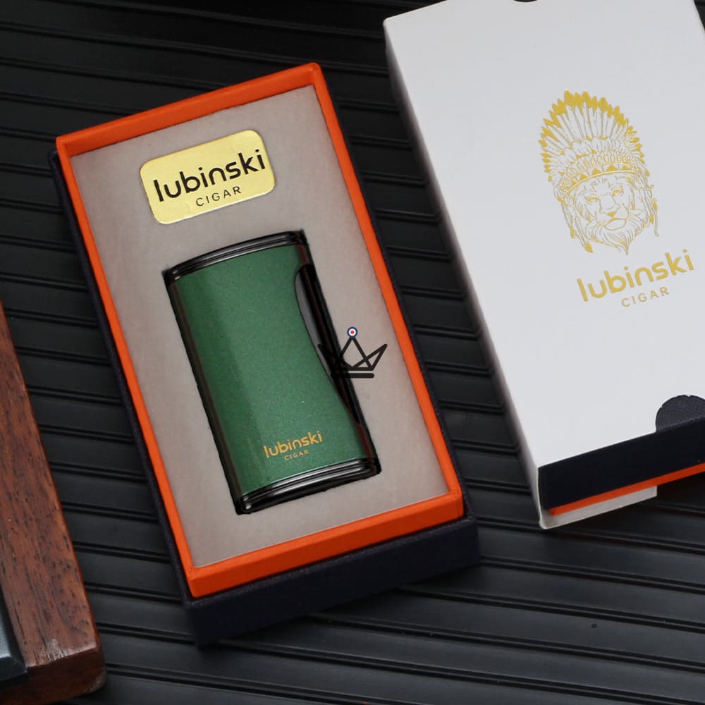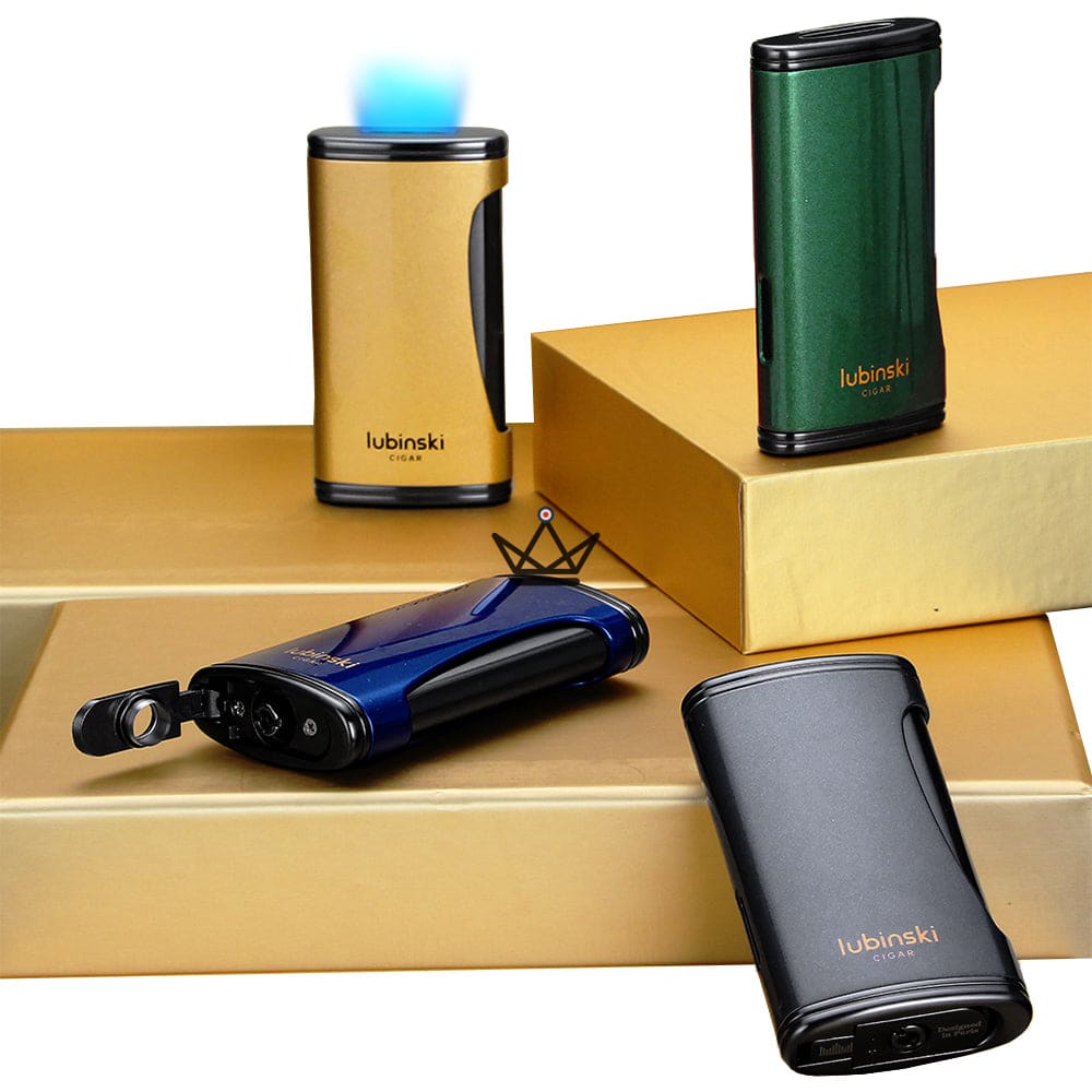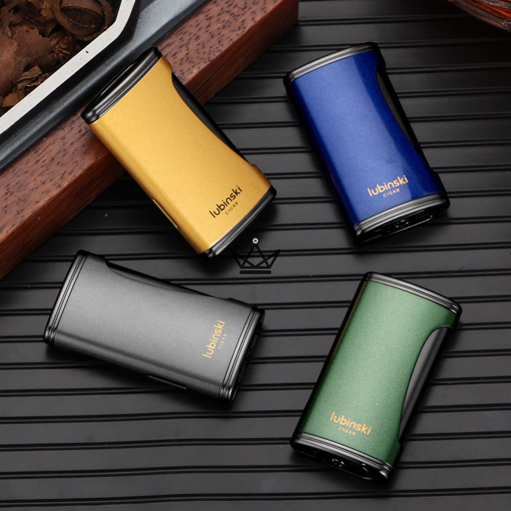 Disponible dans quatre couleurs raffinées – Bleu royal, Or, Gris métallisé et Vert émeraude – il saura apporter une touche de luxe à votre expérience de fumeur de cigares.