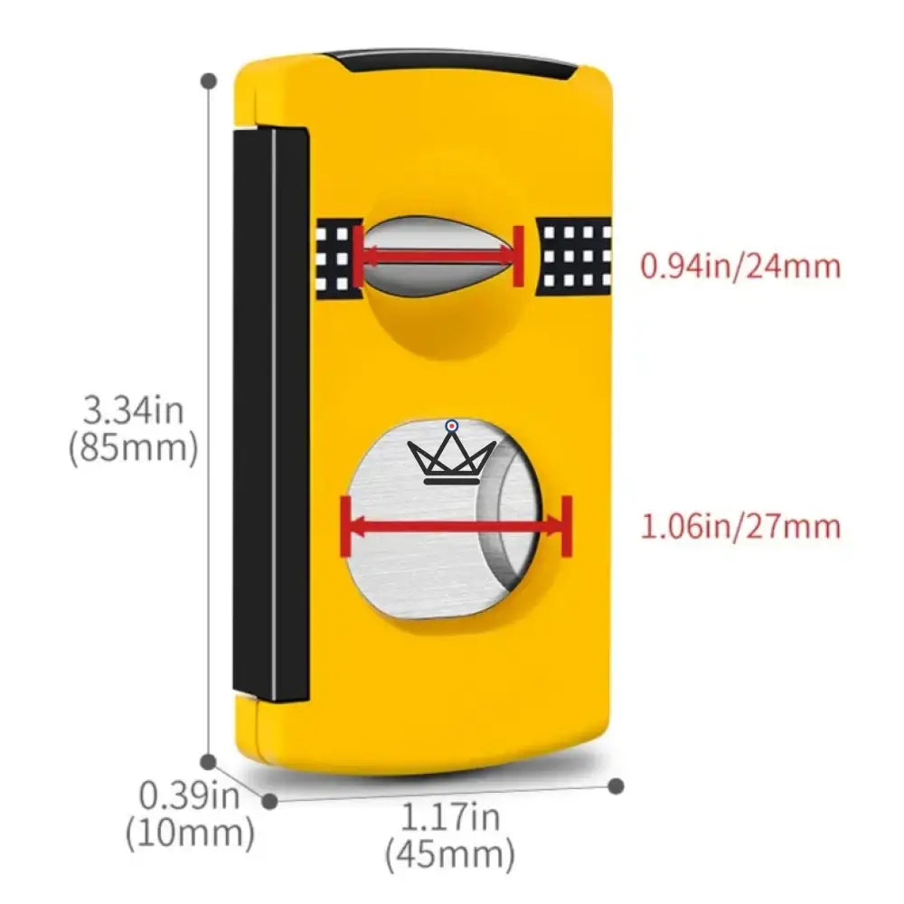 • Coupe en V : Adaptée aux cigares jusqu’à 24 mm de diamètre pour une expérience de fumage concentrée.