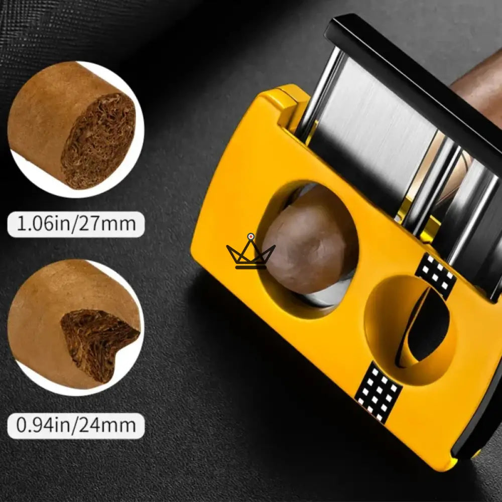 Son mécanisme semi-automatique assure une manipulation fluide et sécurisée, idéal pour couper des cigares de 24 à 27 mm de diamètre.