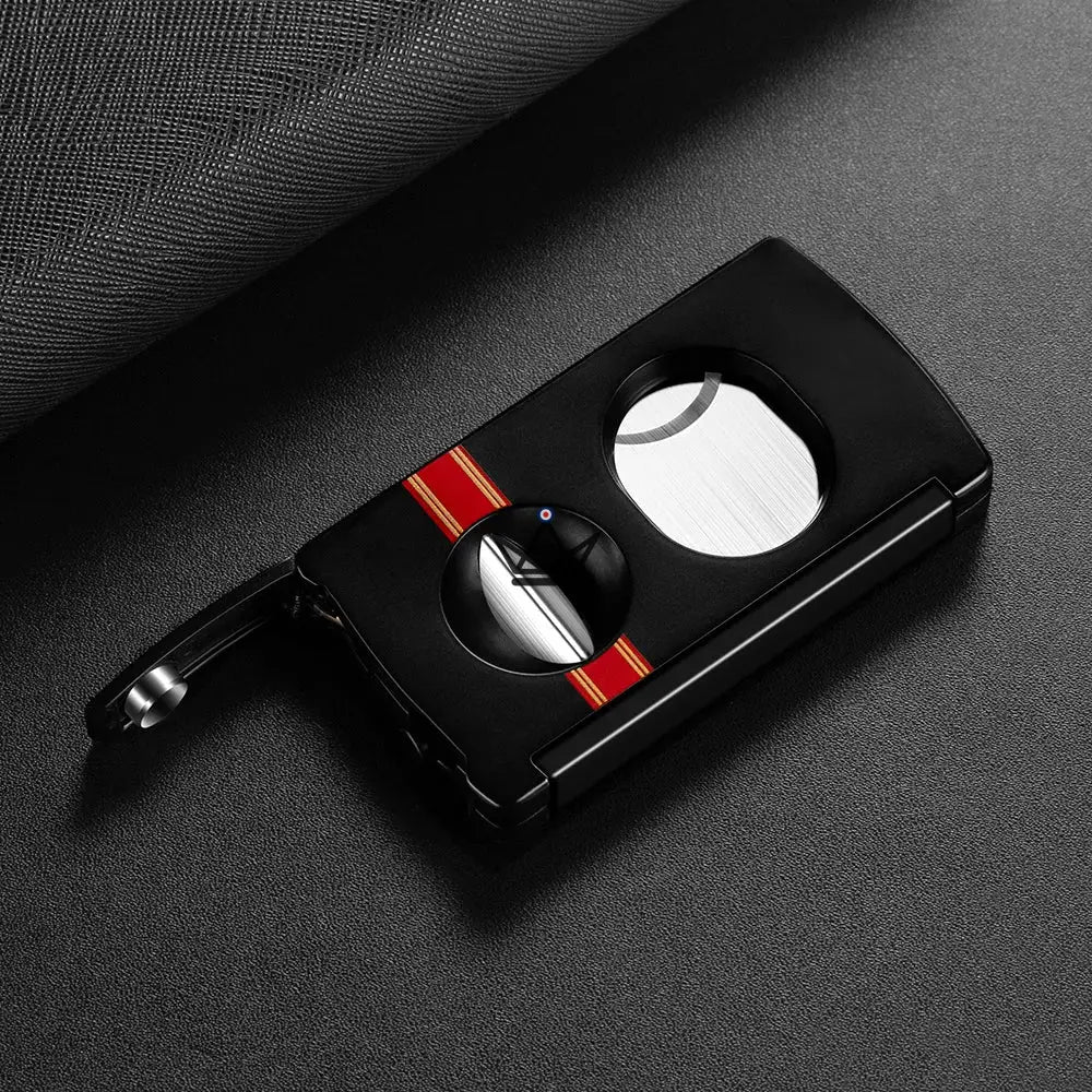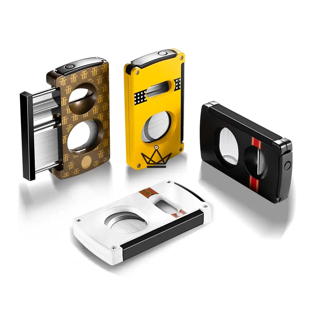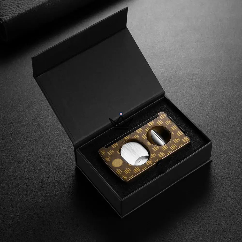 Conçu pour les amateurs exigeants, il combine précision, design raffiné et fonctionnalité supérieure. Fabriqué avec des lames en acier inoxydable de qualité premium, ce coupe-cigare garantit des coupes parfaites tout en préservant la structure et les arômes de vos cigares.