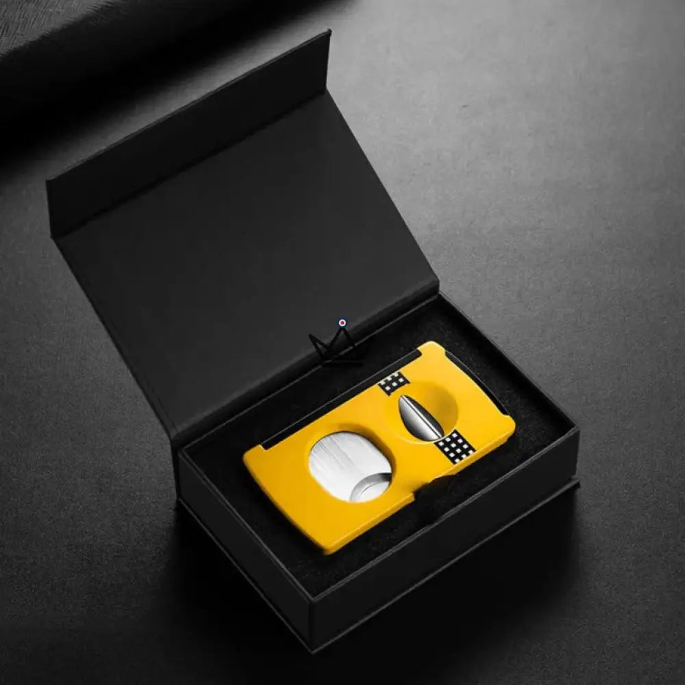 Ce coupe-cigare est également pensé pour séduire esthétiquement : disponible en six finitions élégantes, il est livré dans un coffret cadeau raffiné.
