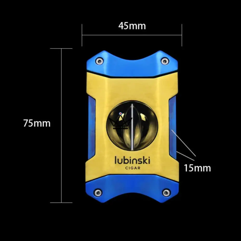 Réalisé en alliage de zinc et acier inoxydable, ce coupe-cigare double lame offre une coupe en V nette, symétrique et sans effort. Son design bicolore doré et bleu profond incarne à la fois l’élégance et la puissance, évoquant l’univers des grandes maisons horlogères.