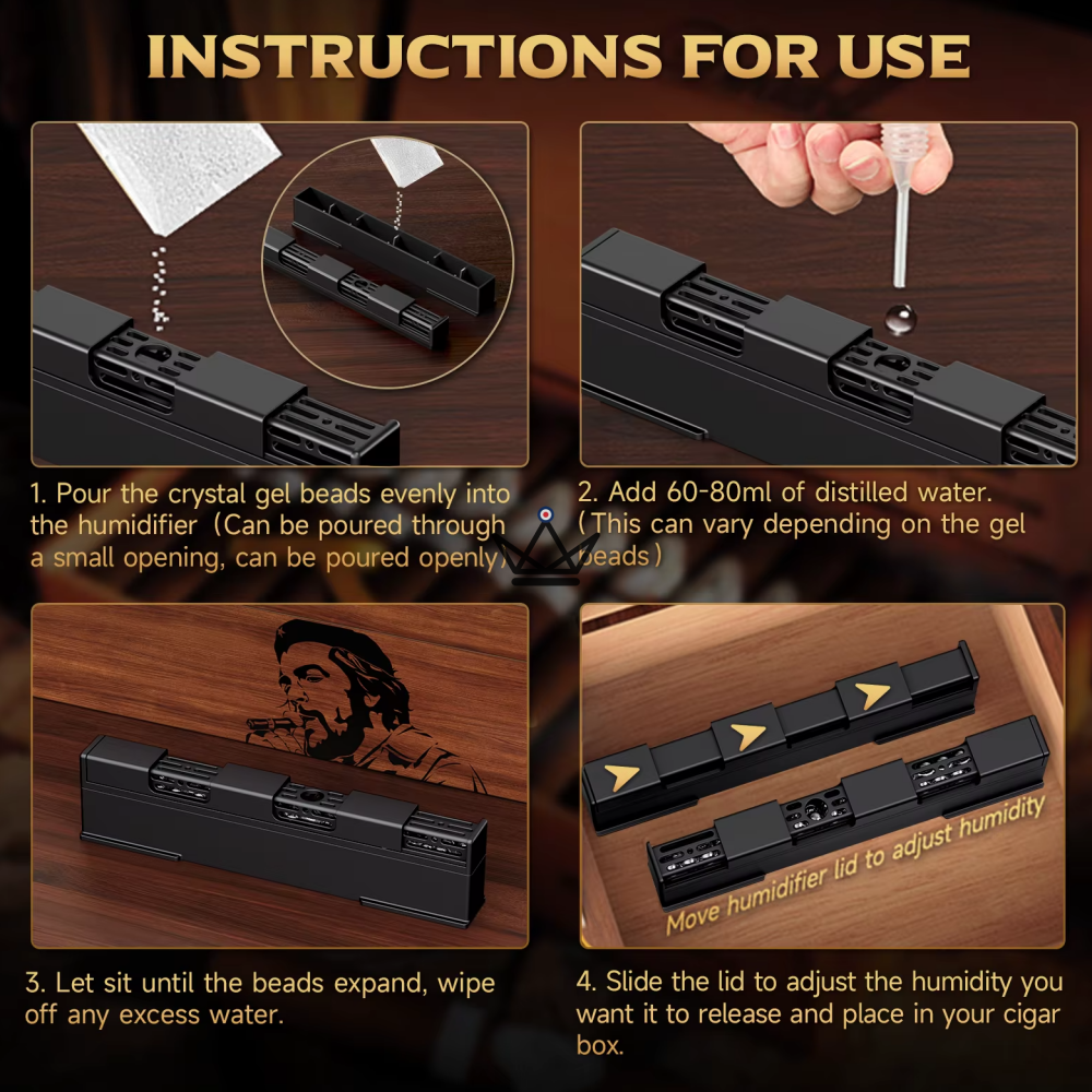 - Tenez l’humidificateur hors contact direct avec les cigares.