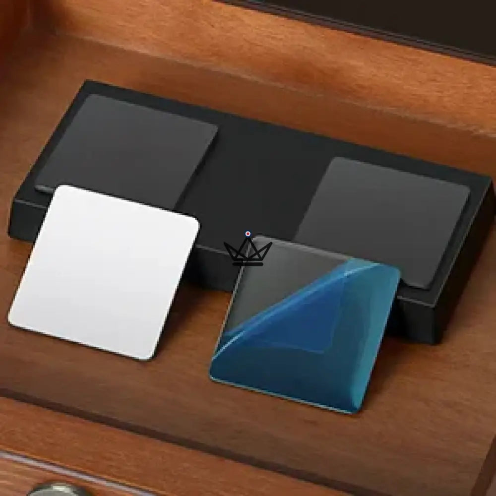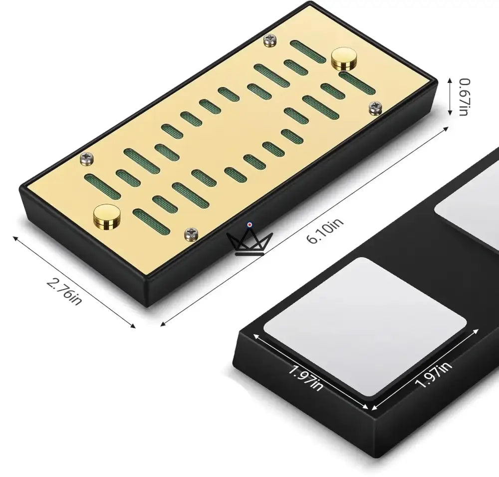Sa façade en métal poliOr Royal ou Platine Argent – se marie aux caves en cèdre comme aux vitrines acryliques. L’installation est immédiate grâce aux pastilles magnétiques double-face fournies (adhésif + plaque), sans perçage ni outil.